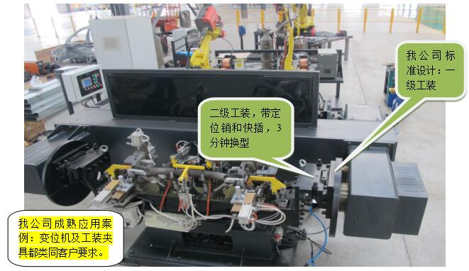 (4)高精度运动的外部轴:源自发那科机床级精密伺服的变位机,使用全进口部件,实现高精度机器人联动,结构合理,刚性卓越,并且有自动的润滑系统。无需人工维护,实现系统控制加润滑油。变位机还带有到位机械锁死结构安全性更高。